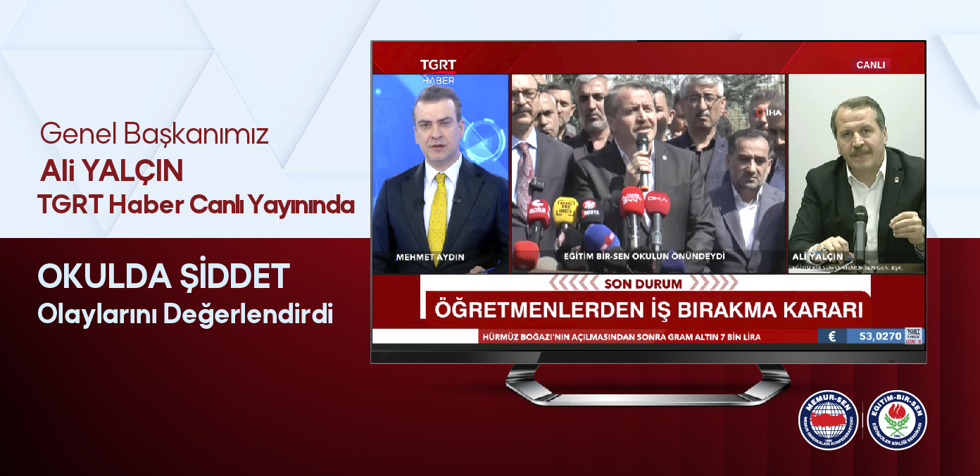GENEL BAŞKANIMIZ ALİ YALÇIN TGRT HABER CANLI YAYININDA OKULDA ŞİDDET OLAYLARINI DEĞERLENDİRDİ