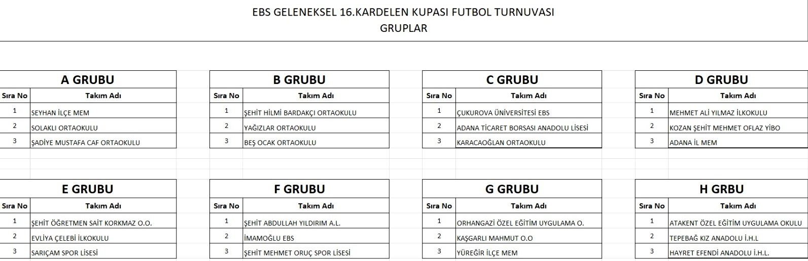 Gerçekleştirilen kura çekimi sonucunda gruplar ve ilk hafta eşleşmeleri belli oldu. "Kaybedenin olmadığı, dostluğun ve kardeşliğin kazandığı" bir atmosferde geçmesi planlanan turnuvada, eğitim çalışanları hem sahadaki yorgunluklarını atacak hem de "Özgür Gazze" mesajını omuz omuza vererek sahadan tüm Türkiye'ye ve dünyaya duyuracak.