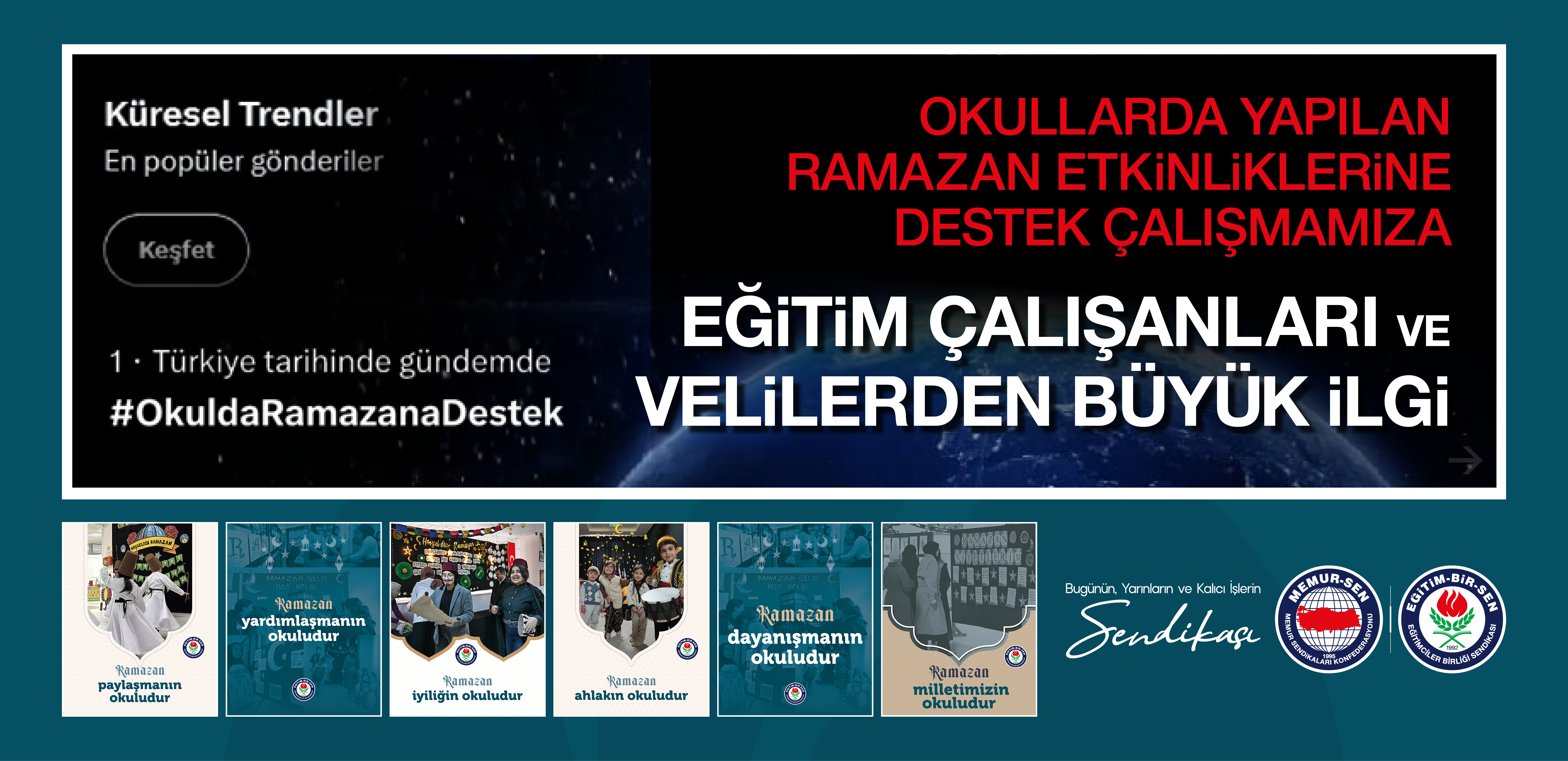 Yalçın, bu anlayışla Memur-Sen’in kuruluşuna öncülük ettiği Uluslararası Emek Örgütü (ILC) ile sınırları aşan bir mücadele yürüttüklerini kaydederek, şöyle konuştu: “Bu bağlamda Memur-Sen’in üyesi, ülkesi ve yerküre için sergilediği bu duruş tarihi bir duruştur. Eğitim Bir-Sen ise Memur-Sen’in kurucu öznesi, özü olarak bu mücadelenin çelik çekirdeğidir. Biz, emeğe karşı mesuliyetimizin gereği olarak eğitim emekçilerinin sorunlarını çözmek, yeni kazanımlar elde etmek için örgütlü gücümüzle mücadele ediyoruz. Milletimize karşı mesuliyetimizin gereği olarak, bu topraklara değer katmak için çalışıyoruz. Küresel sapkın lobilere karşı aileyi, kapitalist sömürü sistemine karşı emeği, emperyalizme karşı küresel özgürlük ve adaleti savunmak için ter döküyoruz. İnsanlığa karşı mesuliyetimizin gereği olarak insanlık ortak paydasında emeğin küresel dayanışması için mücadele ediyoruz. Mazlumların, mağdurların yardımına koşuyor, Doğu Türkistan’dan Gazze’ye dünyanın bütün mazlumlarının sesi, nefesi oluyoruz. Daha adil bir dünyanın mümkün olduğuna inanıyor, bunun için mücadele ediyor, tavrımızla tarihin doğru yerinde duruyoruz. Çünkü biz Eğitim-Bir-Sen’iz. Gücümüzü örgütlülüğümüzden, medeniyet değerlerimizden ve haklılığımızdan alıyoruz. Emeği aziz biliyor, alın terinin gücüne ve kardeşliğine inanıyoruz. Emeğin dayanışması için sınırları aşıyor, ILC ile emperyalizme, kapitalizme, siyonizme karşı insanı ve insanlığın ortak değeri olan emeği savunuyoruz.”