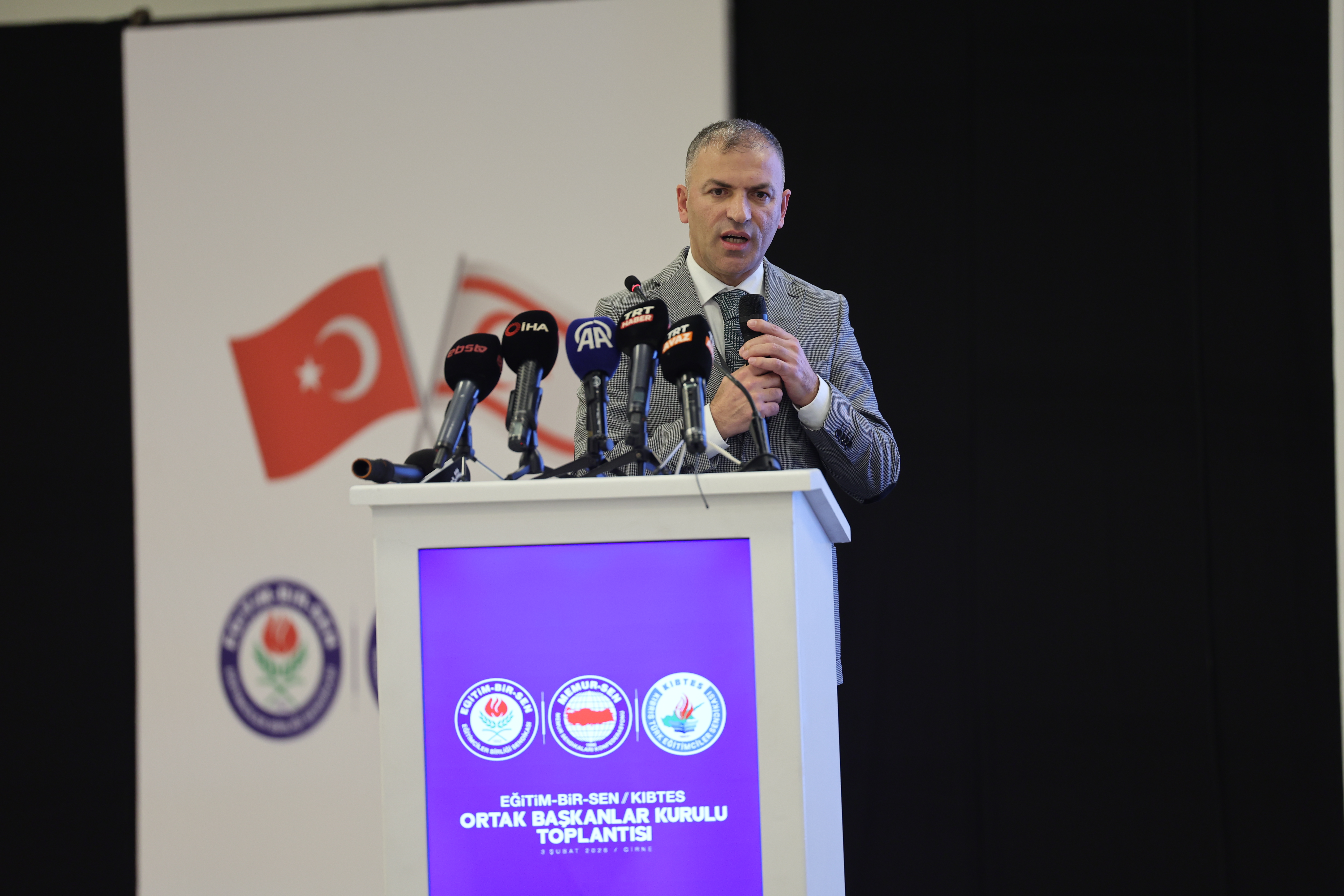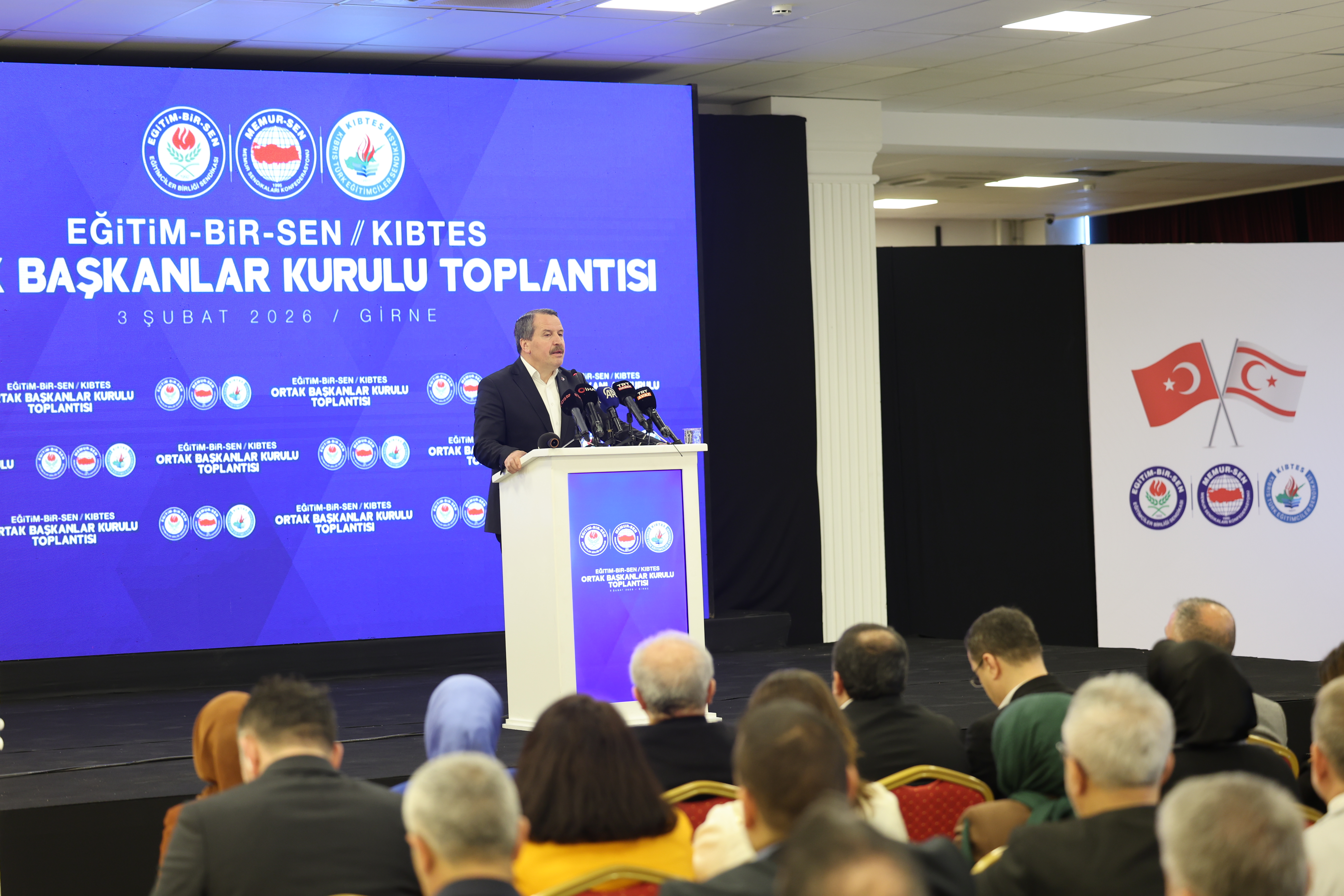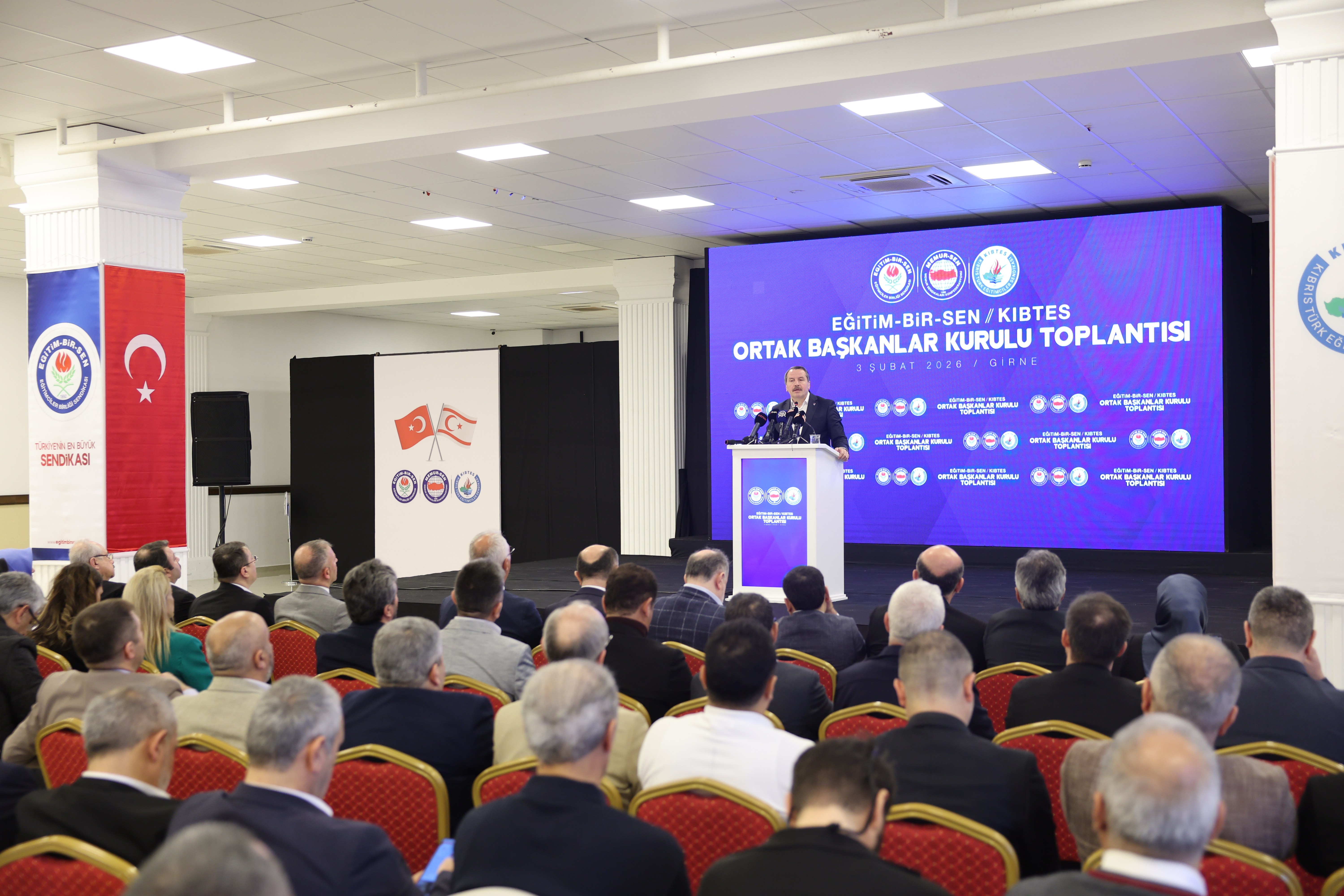 Kıbrıs Türk Eğitimciler Sendikası (KIBTES) Genel Başkanı Himmet Turgut, sadece bir toplantı için bir araya gelmediklerini, bir duruşu, bir kardeşliği, ortak bir geleceği konuşmak için toplandıklarını belirterek, “Biz Kıbrıs Türkleri için Türkiye Cumhuriyeti sadece bir ülke, bir devlet değildir, zor zamanlarda arkamızda hissettiğimiz güçtür aynı zamanda. Yalnız bırakıldığımızı düşündüğümüzde varlığını hissettiğimiz ana vatanımızdır” dedi.